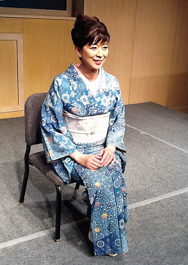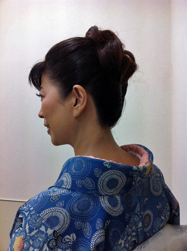 今回は、母の着物を着ての和装での語り。朝早くから出張でヘアスタイリストさん、富樫さんが、すっきりとアップにしてくださいました。