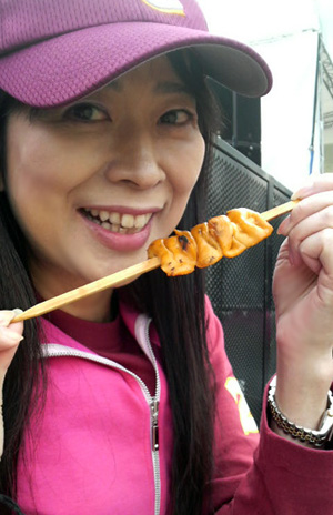 ゆーみんは 牛タンの串焼きを頬張ってました。