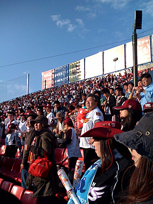 改札にて 満面の笑みの父と落ち合い、入院中の母を見舞い、実家に荷物を置いて、タクシーでkスタ宮城へ。